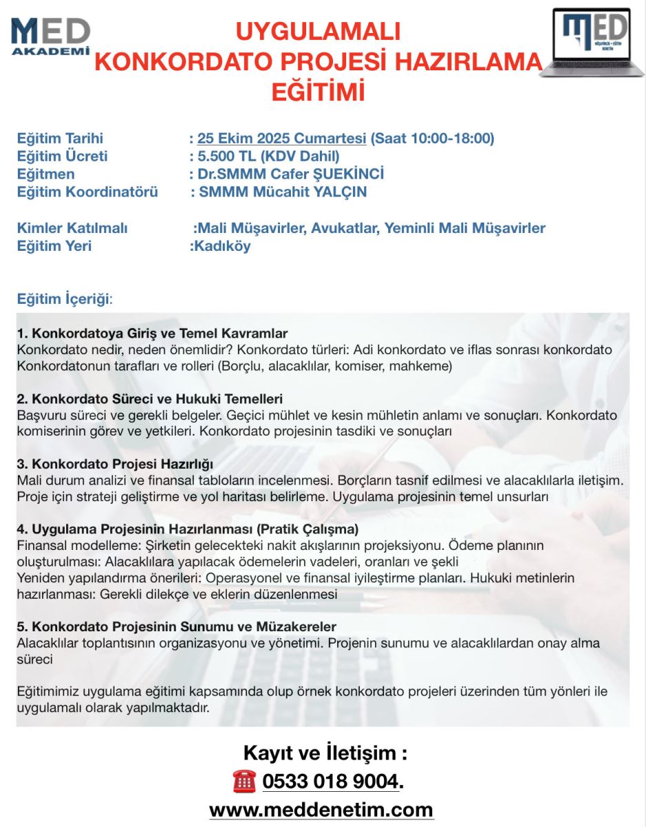 UYGULAMALI KONKORDATO PROJESİ HAZIRLAMA EĞİTİMİ